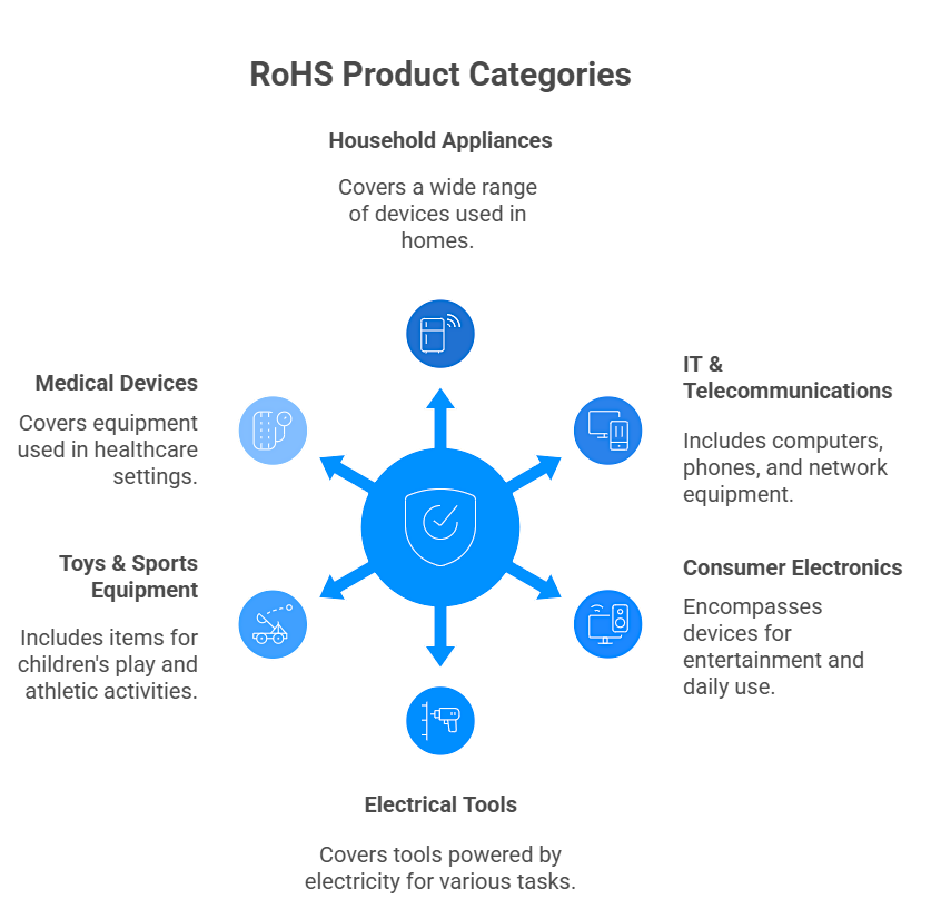 In short, if an electrical product falls within these categories and is being placed on the EU market, RoHS will apply. This narrower scope means RoHS isn’t a universal chemical regulation like REACH. Instead, it is tied to the context of EEE and related materials.