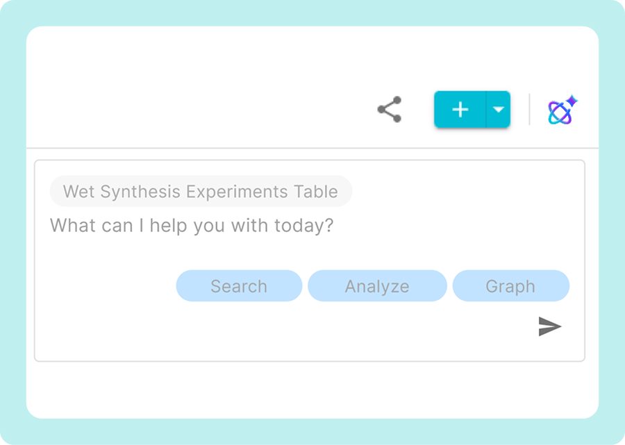 Our conversational, LLM-powered chatbot lets you interact with your data using natural language. Simply ask questions, request insights, or explore trends, and the chatbot responds with clear explanations, direct links to relevant data objects, and rich visualizations that bring your materials data to life.